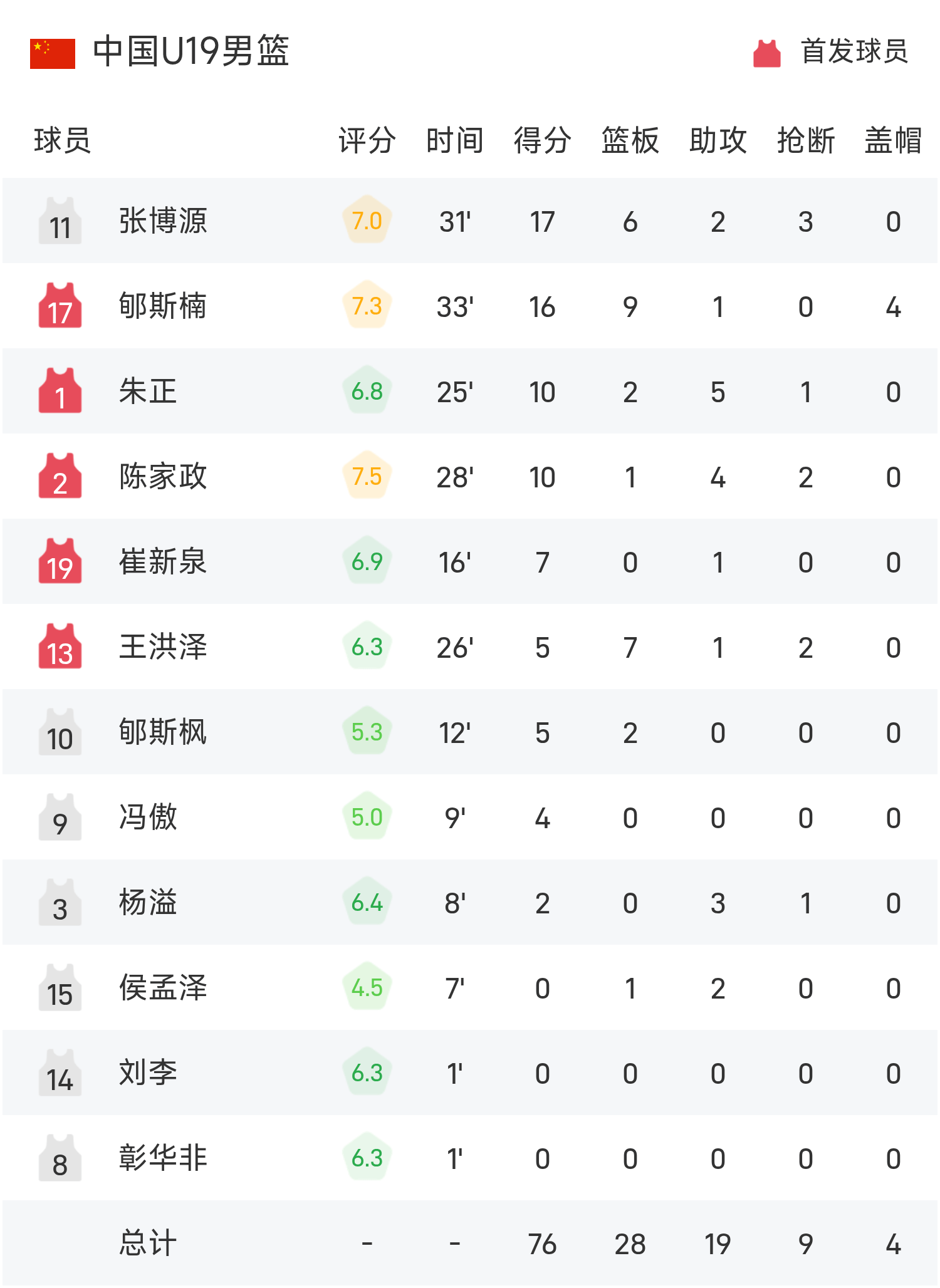 07月05日讯 25赛季U19世界杯 9-16排名赛,中国U19男篮对阵法国U19男篮。双方全场战罢,中国U19男篮76-85不敌...